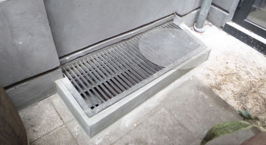 Man kan også anlægge en bred afløbsrende ved trappenedgangen og sætte et skot på kælderdøren eller ved kældernedgangen.