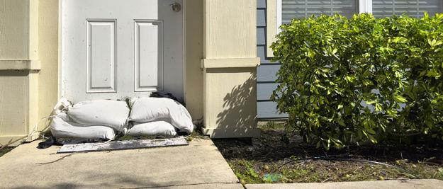 Når vandet kommer, kan du beskytte din bolig med sandsække. Sække fyldes med sand og snøres sammen foroven. Derefter placeres sækkene strategisk omkring den ejendom/åbning, som du vil beskytte mod vandskade.